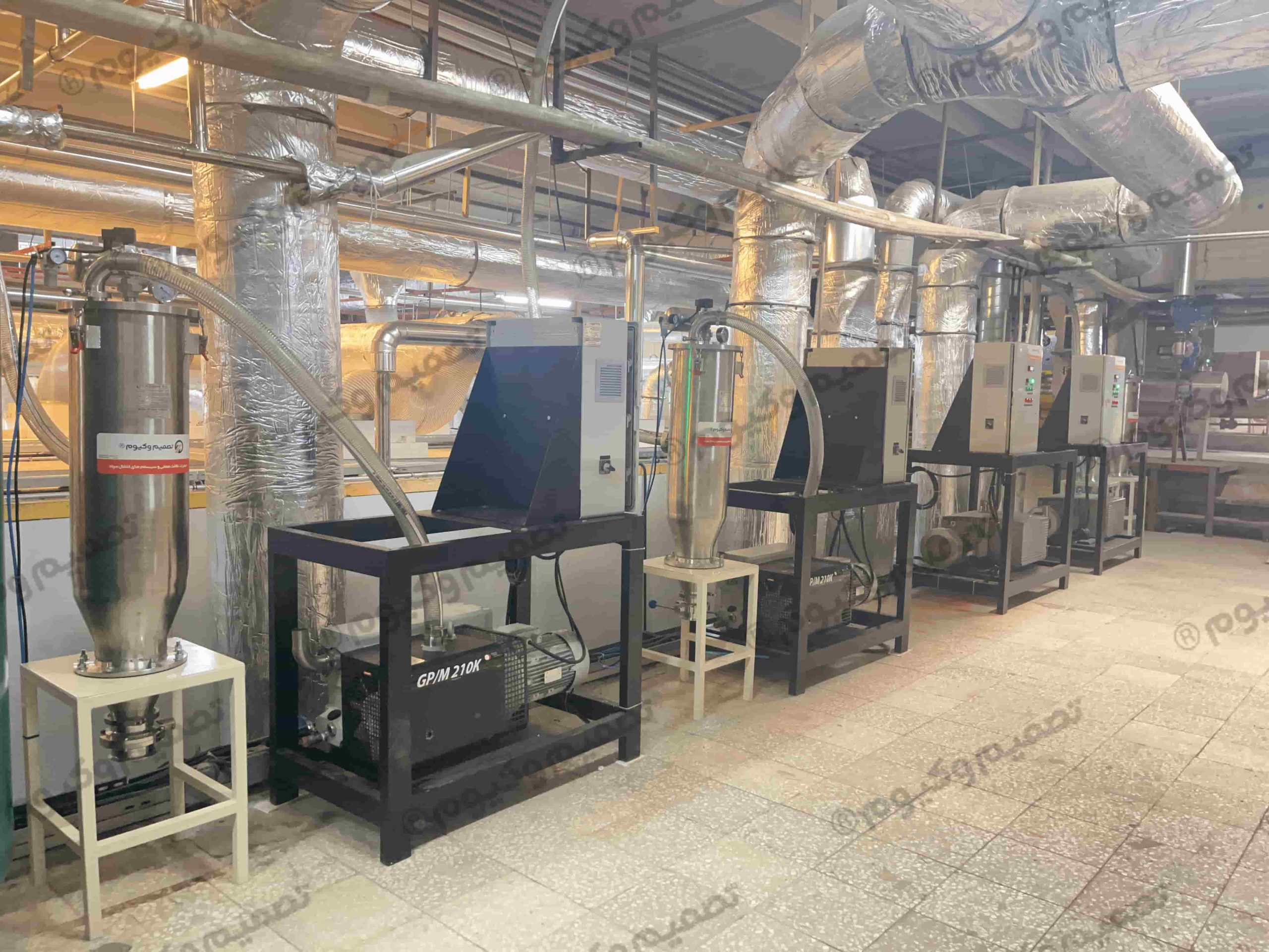 در این پروژهٔ ملی در حوزهٔ سلامت، سیستم انتقال پنوماتیکیِ خلأ برای جابه‌جایی گرانول پلیمری از سیلوی اصلی به اتوفیل‌های نصب‌شده روی خطوط ساخت سرم پیاده‌سازی شد. انتقال از طریق ۳۰۰ متر پایپ تمام‌استیل انجام می‌شود و با بهره‌گیری از بافرتانک‌ها و هاپرهای میانی متعدد، تغذیهٔ یکنواخت و بدون وقفهٔ خطوط تولید تضمین شده است. ظرفیت عملیاتی سیستم ۵۰۰ کیلوگرم بر ساعت بوده و کل پروژه طی ۸۰ روز کاری در استان آذربایجان شرقی اجرا شده است.